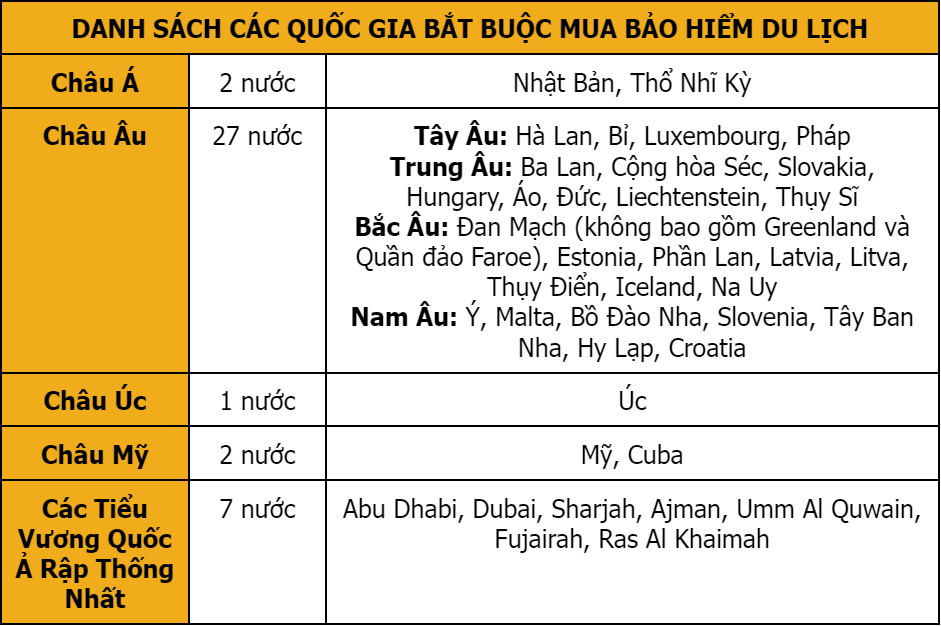 CÁC QUỐC GIA BẮT BUỘC MUA BẢO HIỂM DU LỊCH