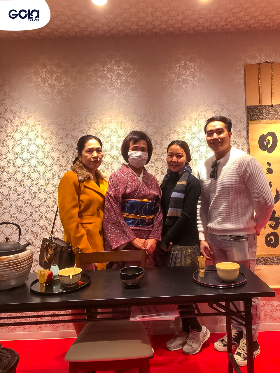 Đoàn khách tham gia vào lớp học trà đạo truyền thống