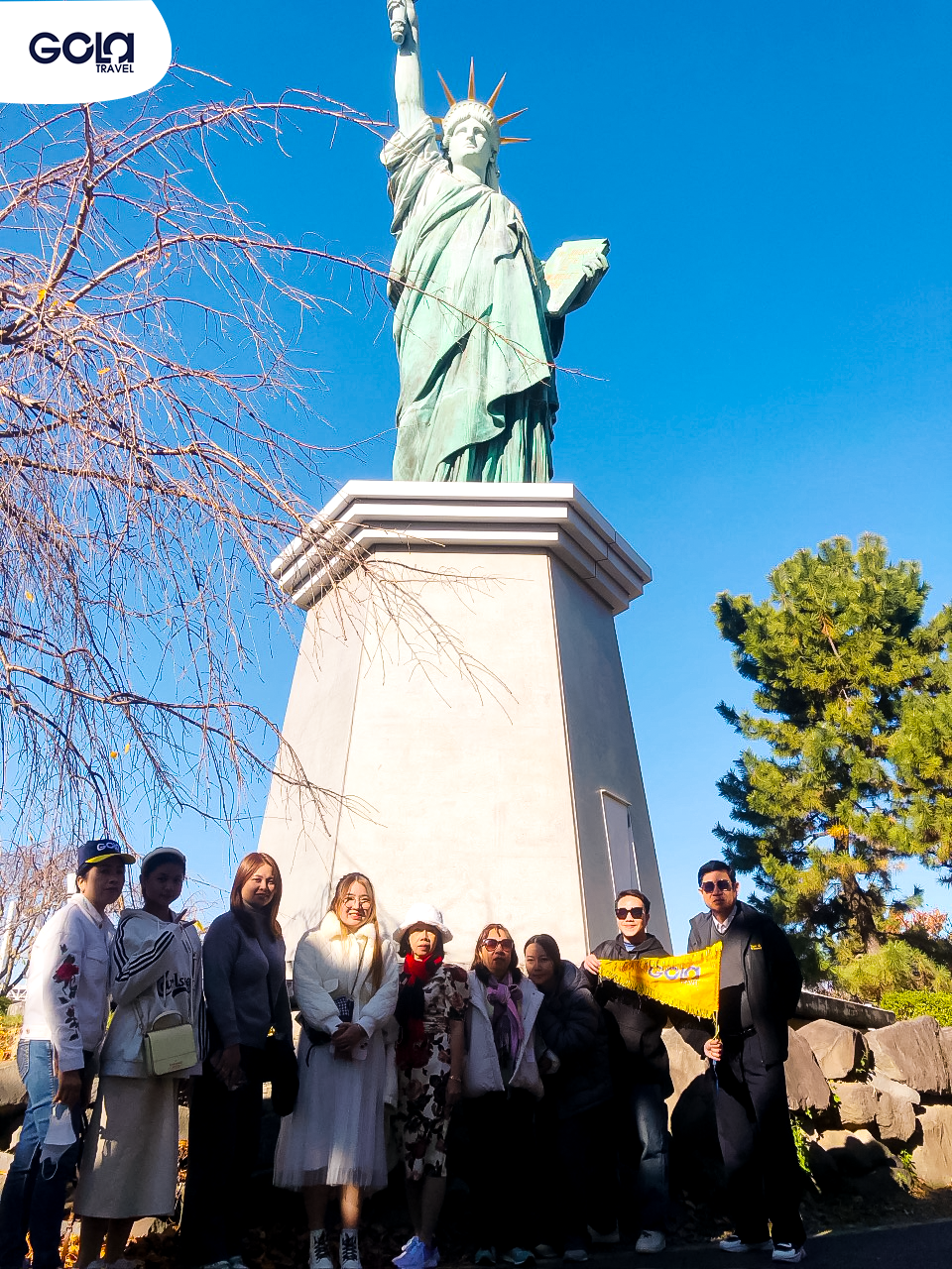 Đoàn khách check-in tại Tượng nữ thần tự do phiên bản Nhật