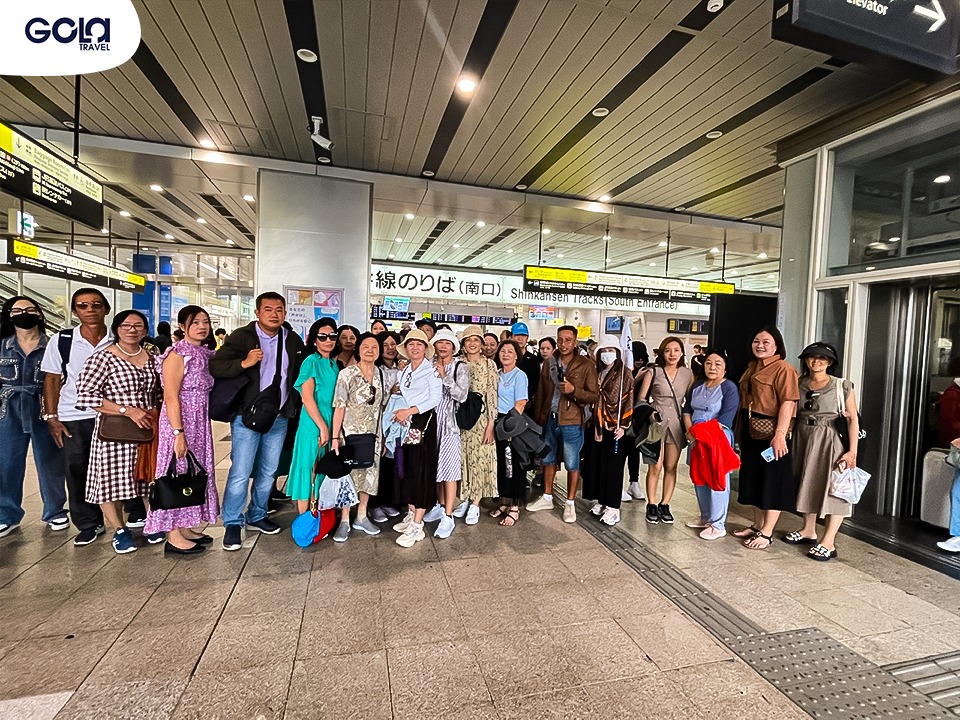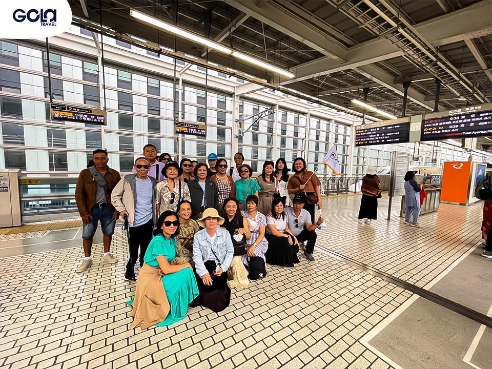 Đoàn khách có mặt tại nhà ga trải nghiệm tàu điện Shinkansen