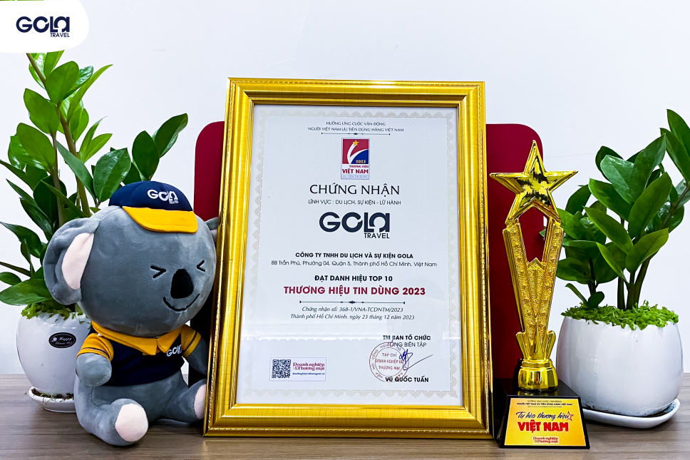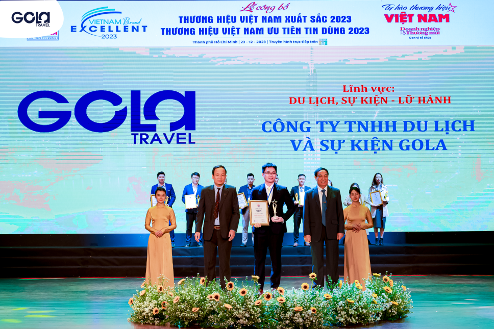 Sáng ngày 23/12/2023 vừa qua, trong khuôn khổ lễ công bố “Tự hào thương hiệu Việt Nam 2023” được tổ chức tại Tp.HCM, GOLA TRAVEL tự hào được vinh danh “Top 10 Thương Hiệu Tin Dùng 2023”.